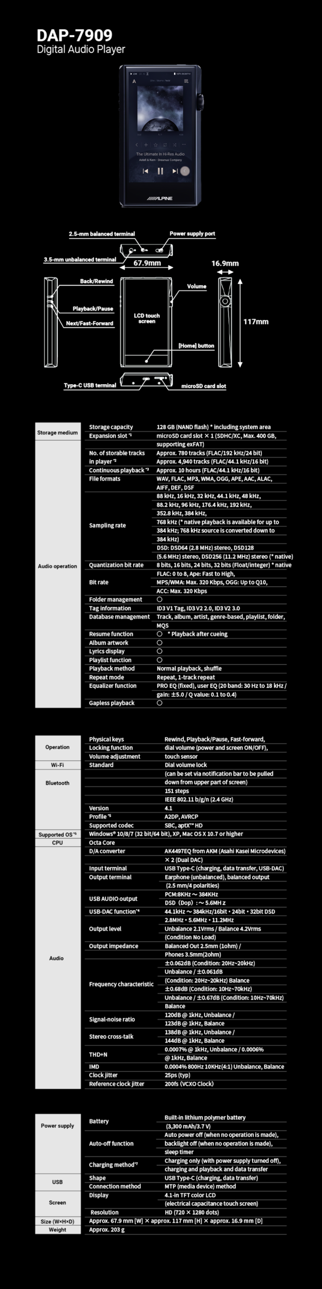 Home/AlpineF#1Status/DAP-7909 DAP-7909 Digital Audio Player WhatsAppSgcarmartShopee Description Related products HDZ-900 HDA-F900 HDP-H900 HDS-7909